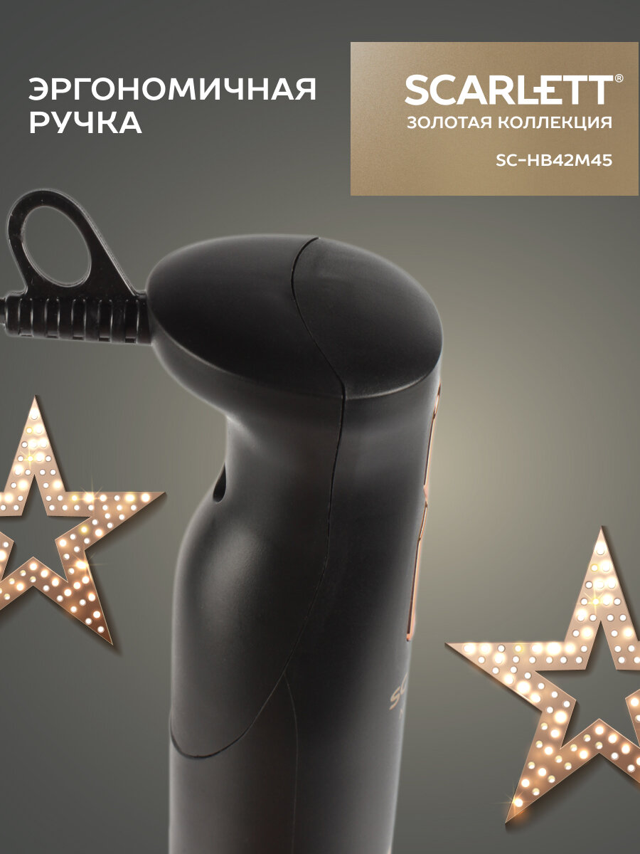 Блендер Scarlett Золотая коллекция SC-HB42M45, погружной, черный/золотистый
