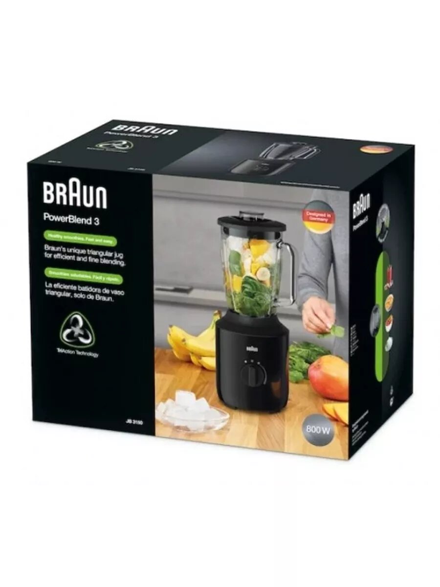 Стационарный блендер Braun PowerBlend JB3150BK, черный, мощность 800 Вт, колка льда
