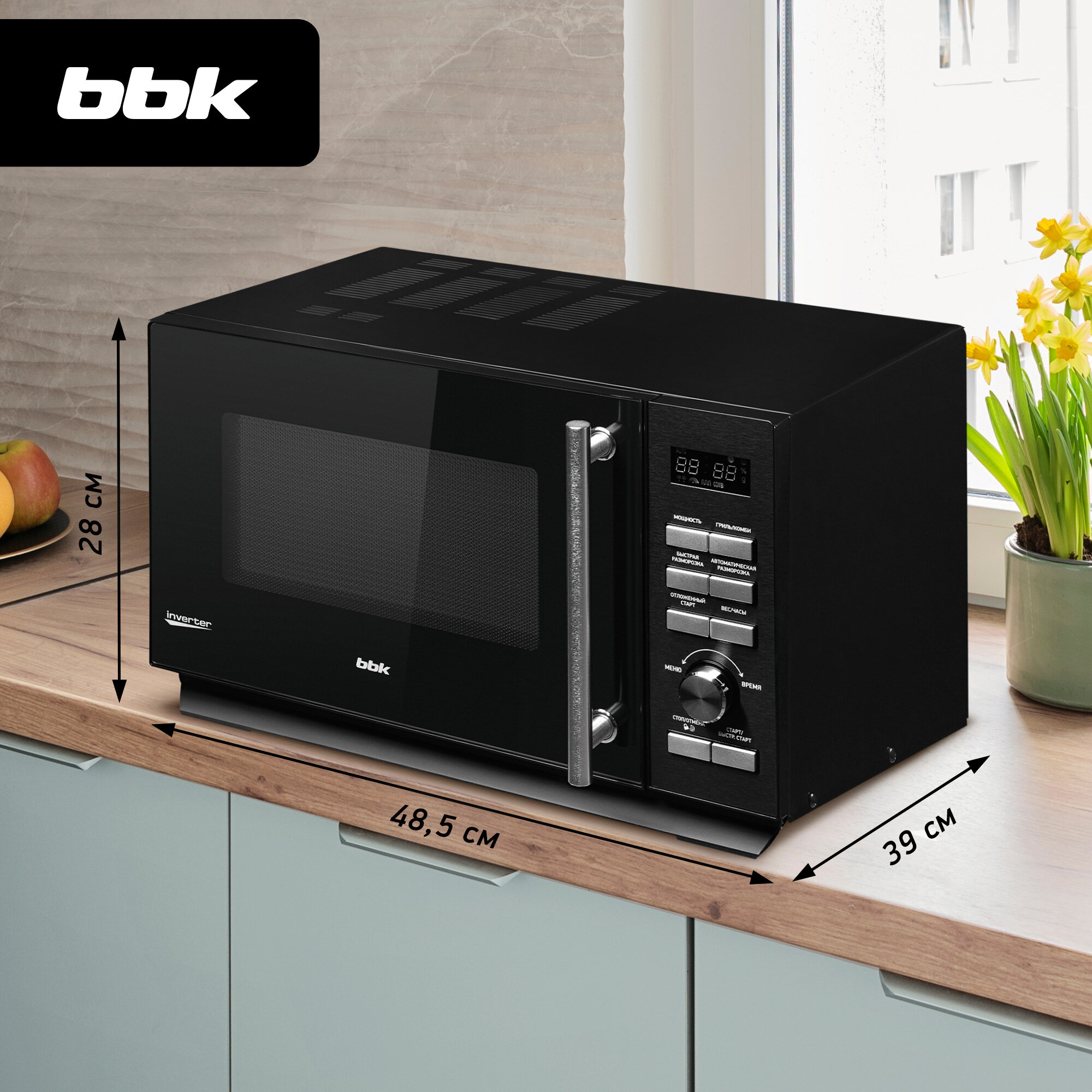 Микроволновая инверторная печь с грилем BBK 25MWI-939T/B черный, объем 25 л, мощность 900 Вт, автоменю, блокировка от детей интересное: