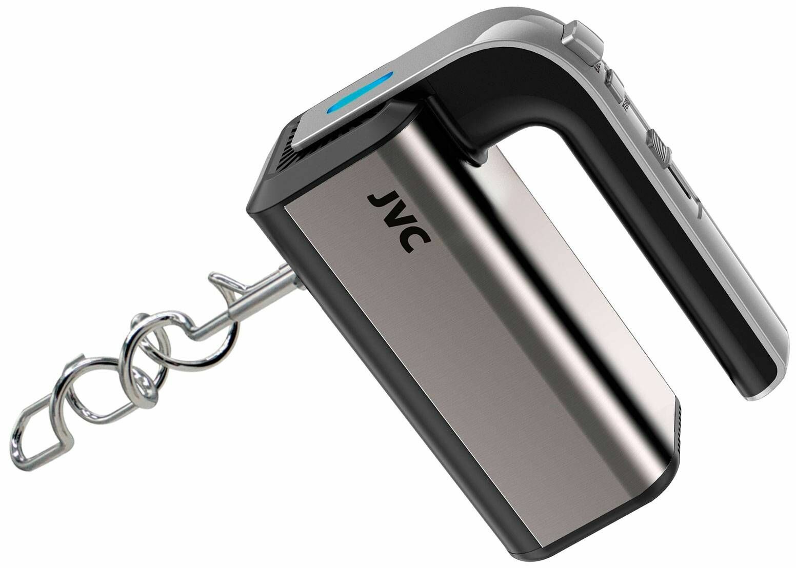 Ручной миксер JVC домашний с эффективной системой охлаждения, LED подсветка, 5 скоростей, режим турбо, 4 насадки, 350 Вт