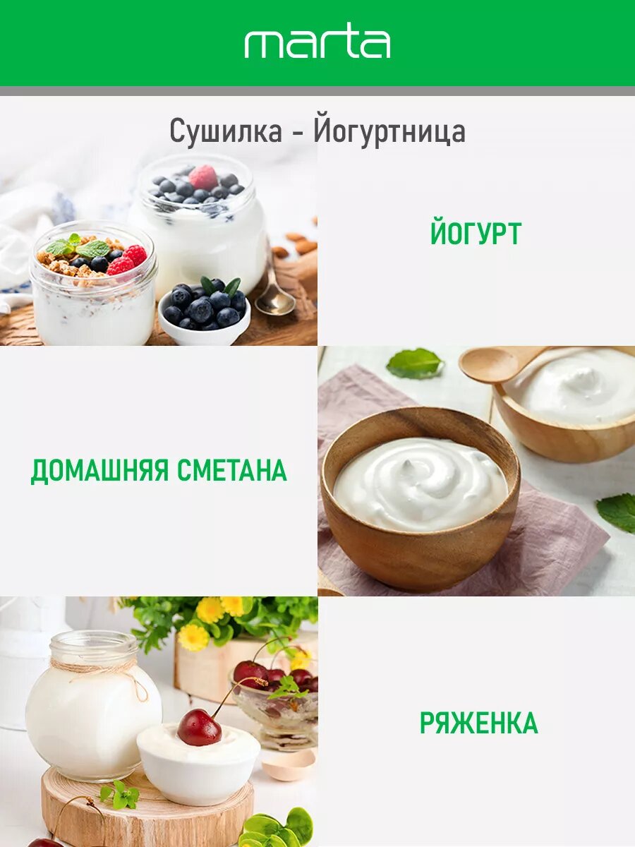 Дегидратор сушилка для овощей электросушилка MARTA MT-FD1888A 8 поддонов (4 основных + 2 для пастилы + 2 для ягод) белый