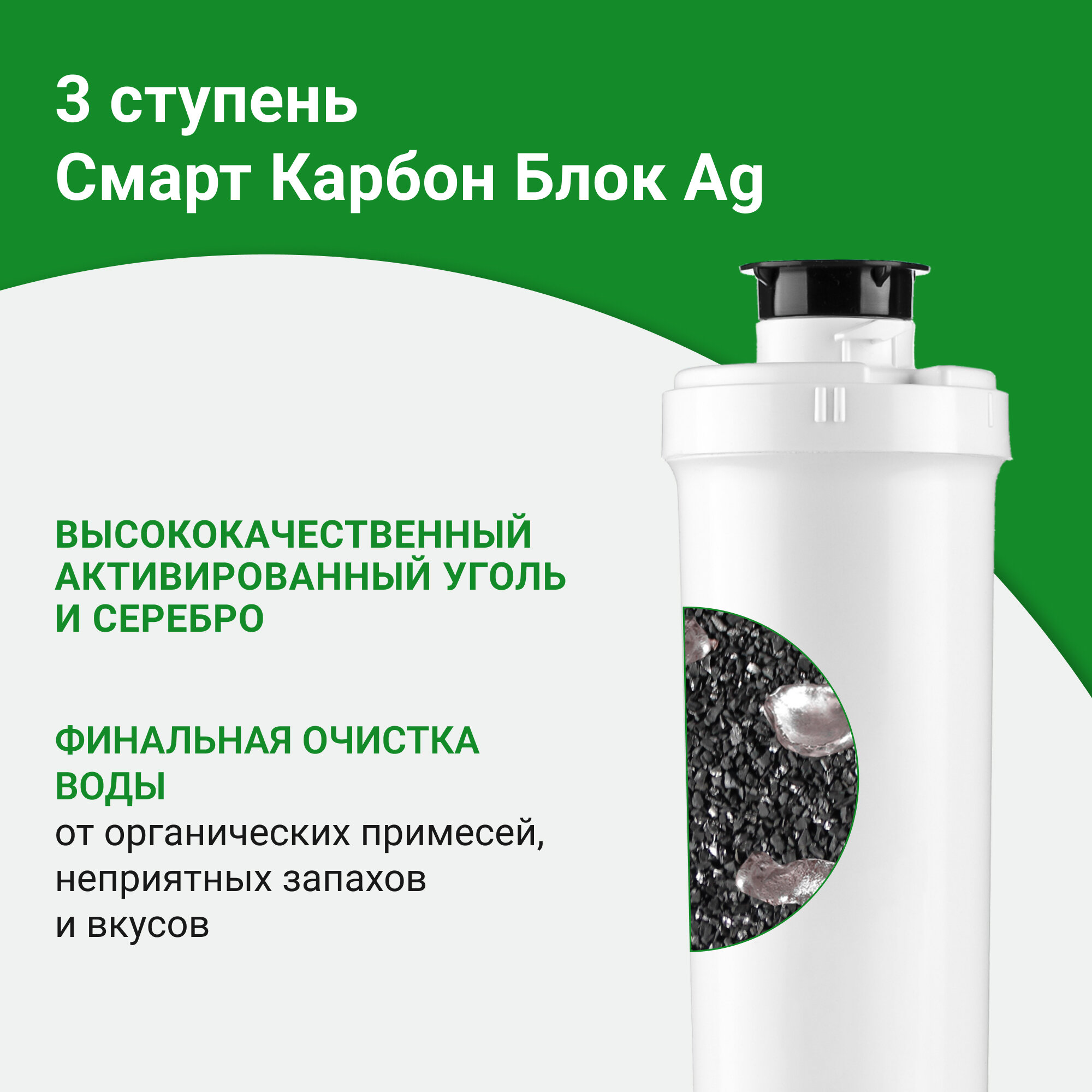 Купить Сменный картридж Гейзер Карбон Блок Ag Смарт, содержит высококачественный активированный уголь, 30645