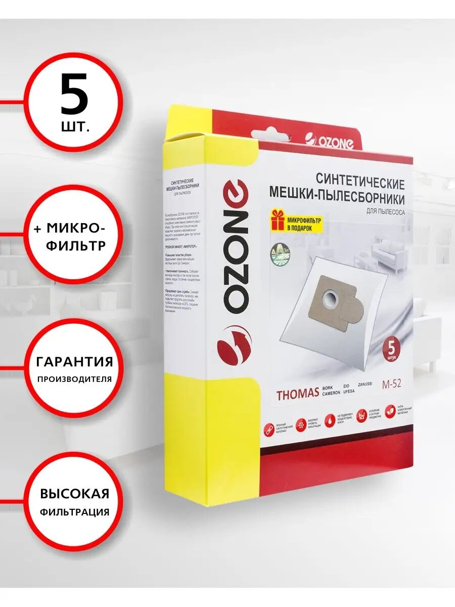 OZONE Мешки пылесборники для пылесоса THOMAS, 5 шт., синтетические, многослойные M-52.
