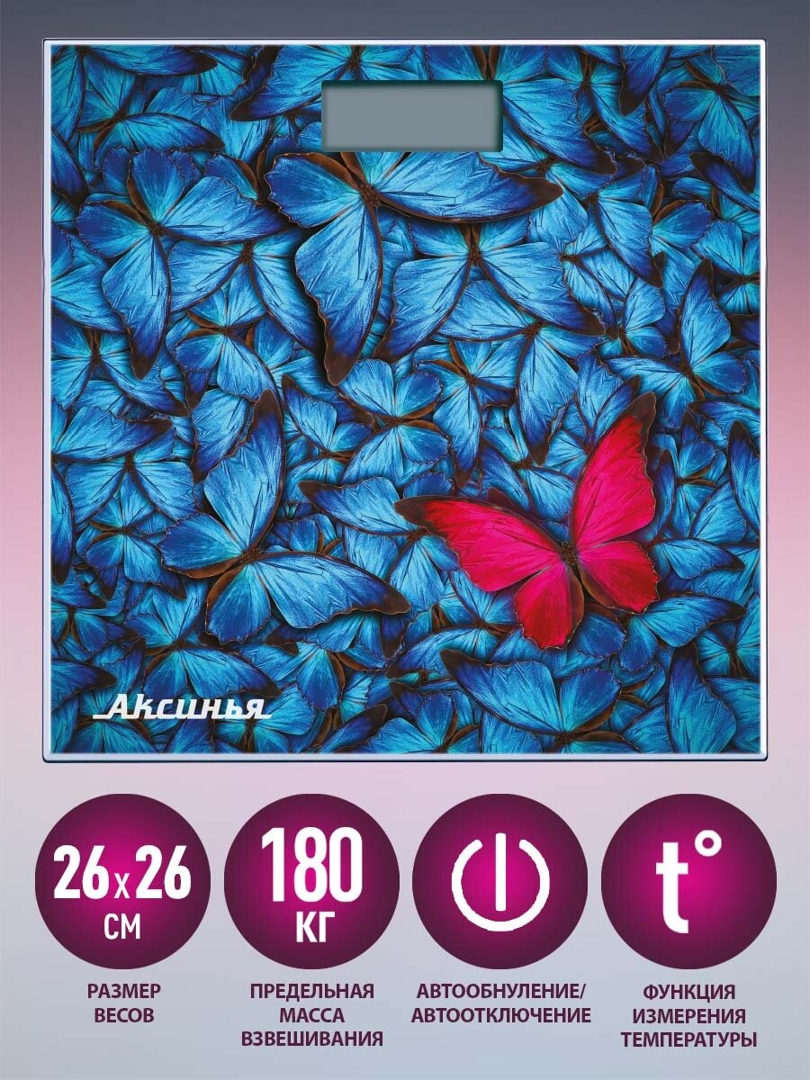 СохранитьВесы напольные электронные аксинья КС-6001 "Бабочки": 180 кг, 26*26см интересное: