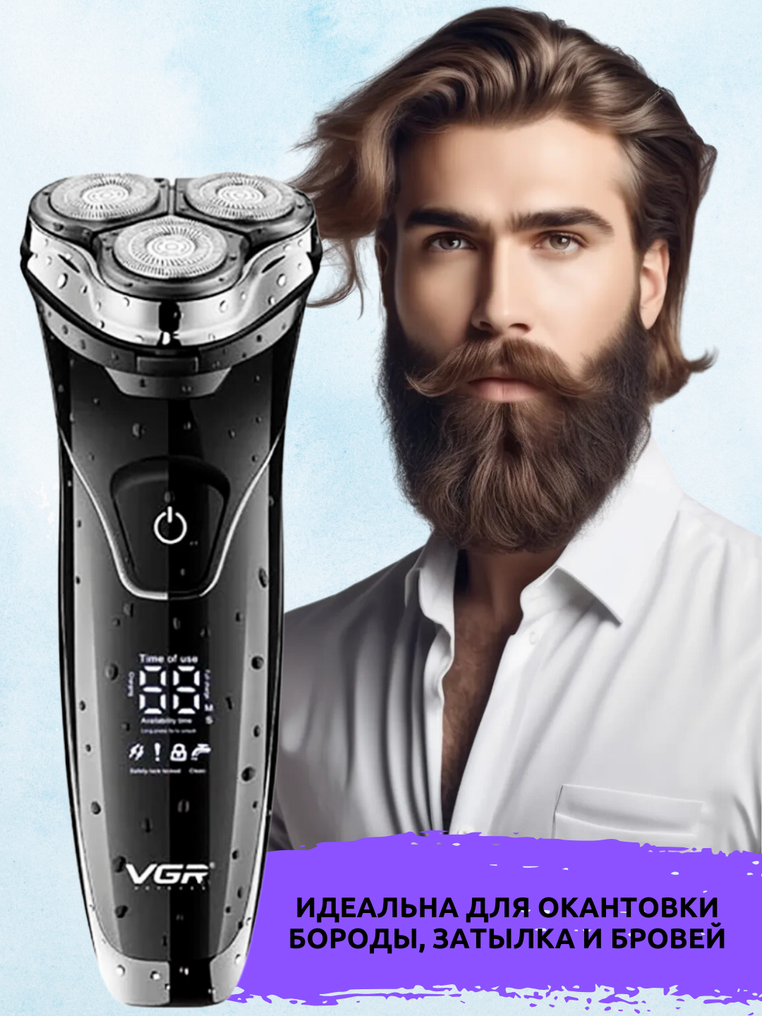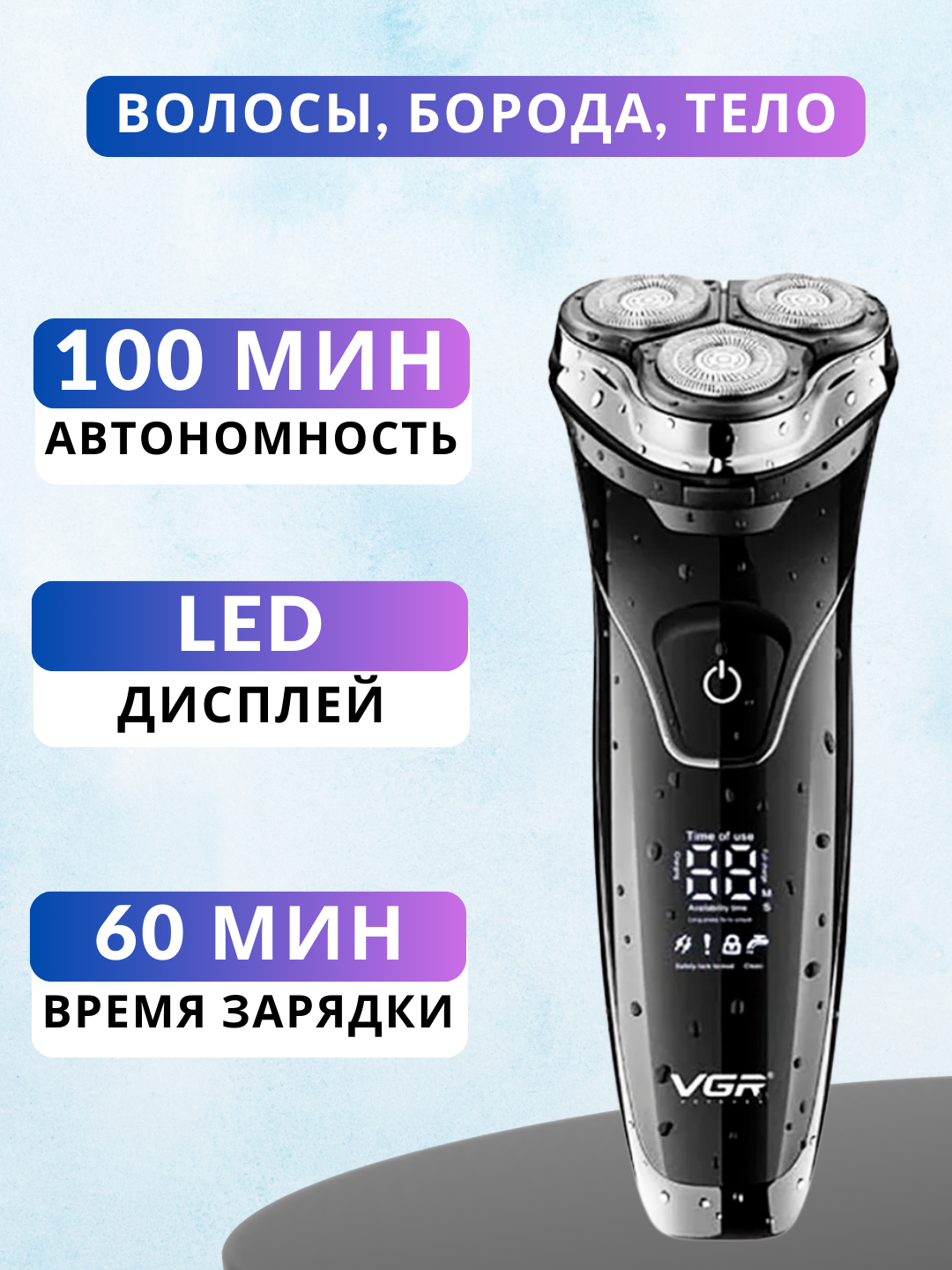 Электробритва / влажное и сухе бритье / LED- дисплей/ электробритва для мужчин V0318IPRO / черный