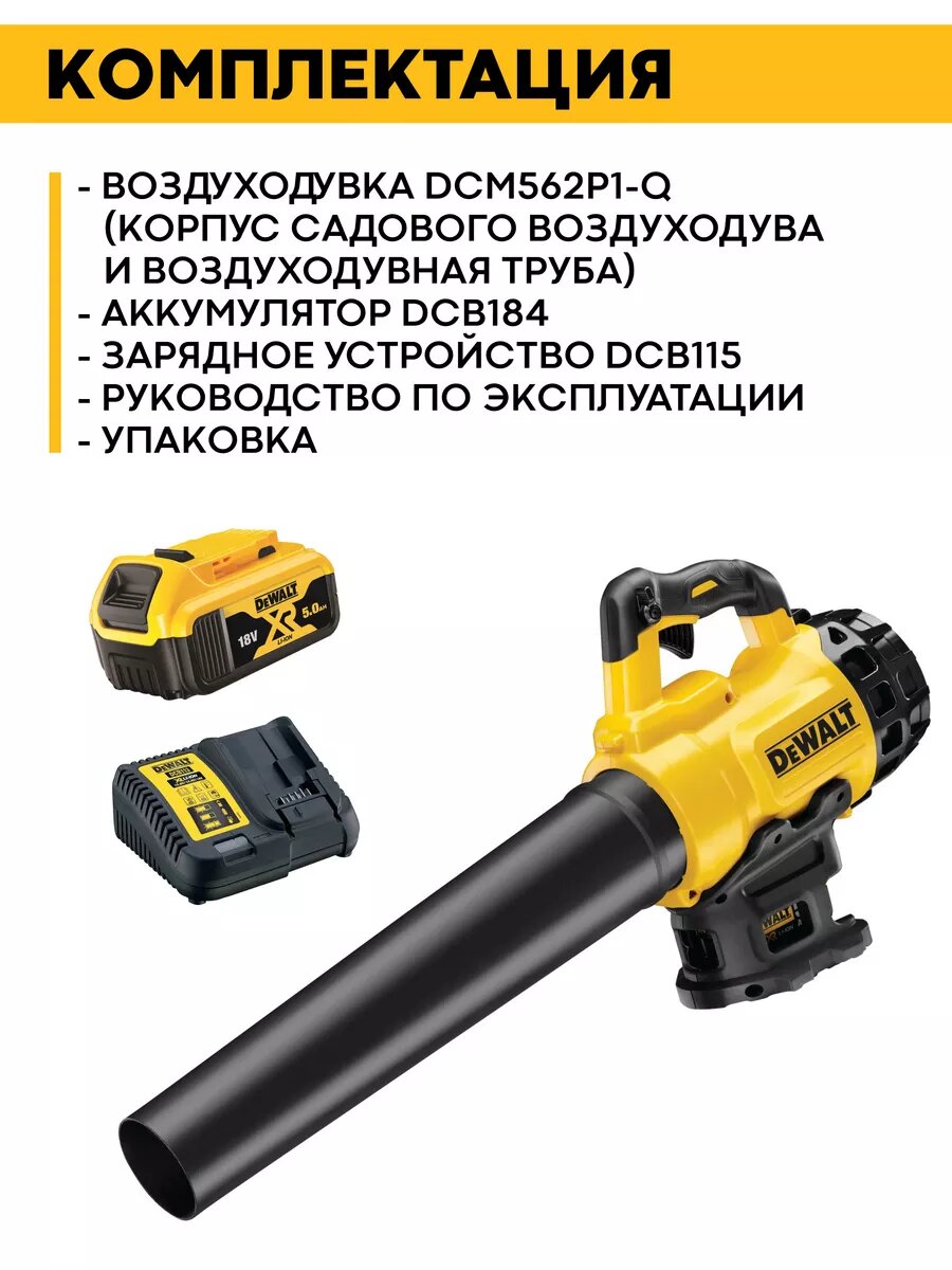 Аккумуляторная воздуходувка DeWALT DCM562P1-QW, 18 В
