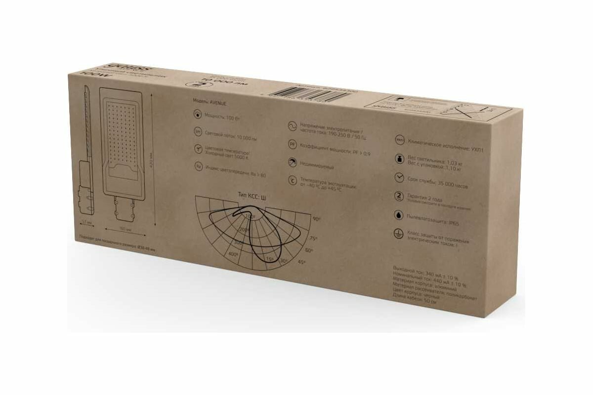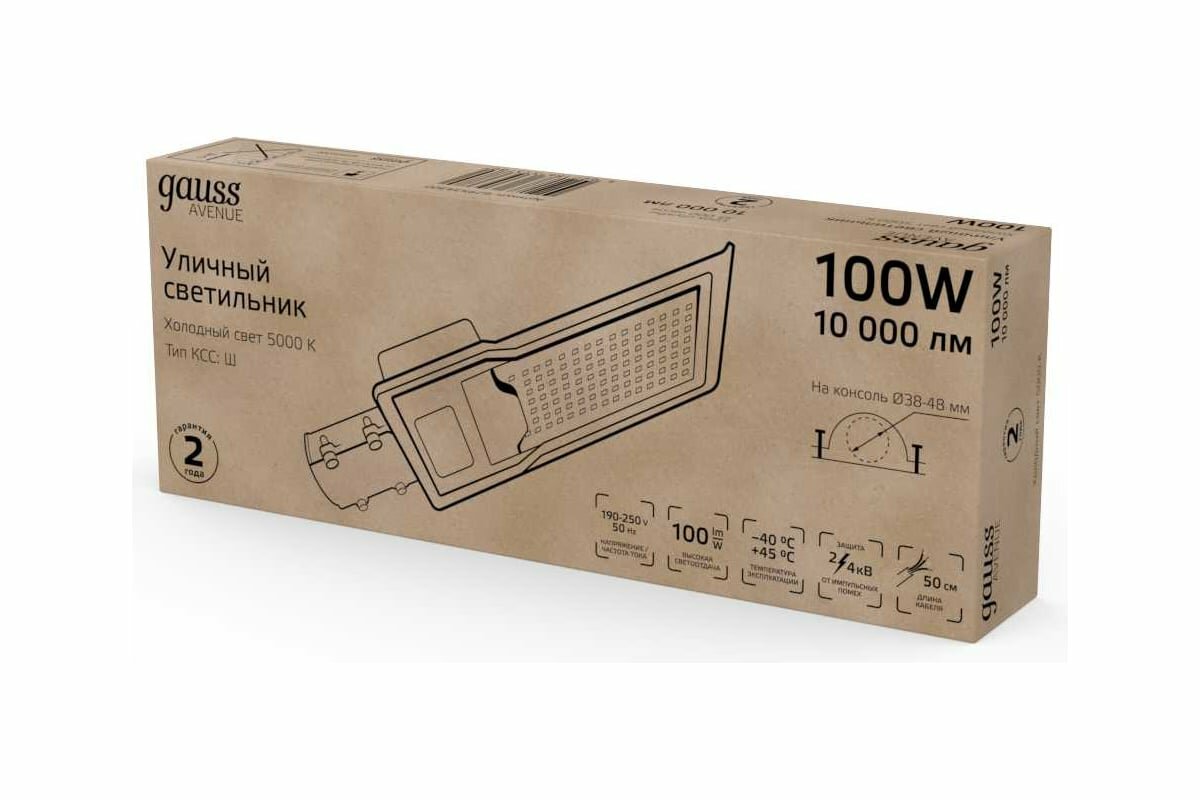 Уличный светильник GAUSS Avenue 100W 10000lm 5000K 190-250V IP65 420х160х57мм черный LED 1/10 629534300
