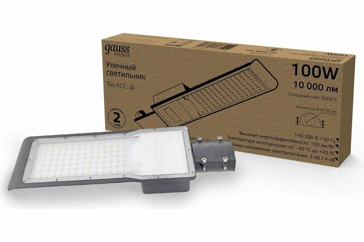 Купить Светильник уличный светодиодный Gauss Avenue 5000 К 100 Вт консольный IP65 (629534300)