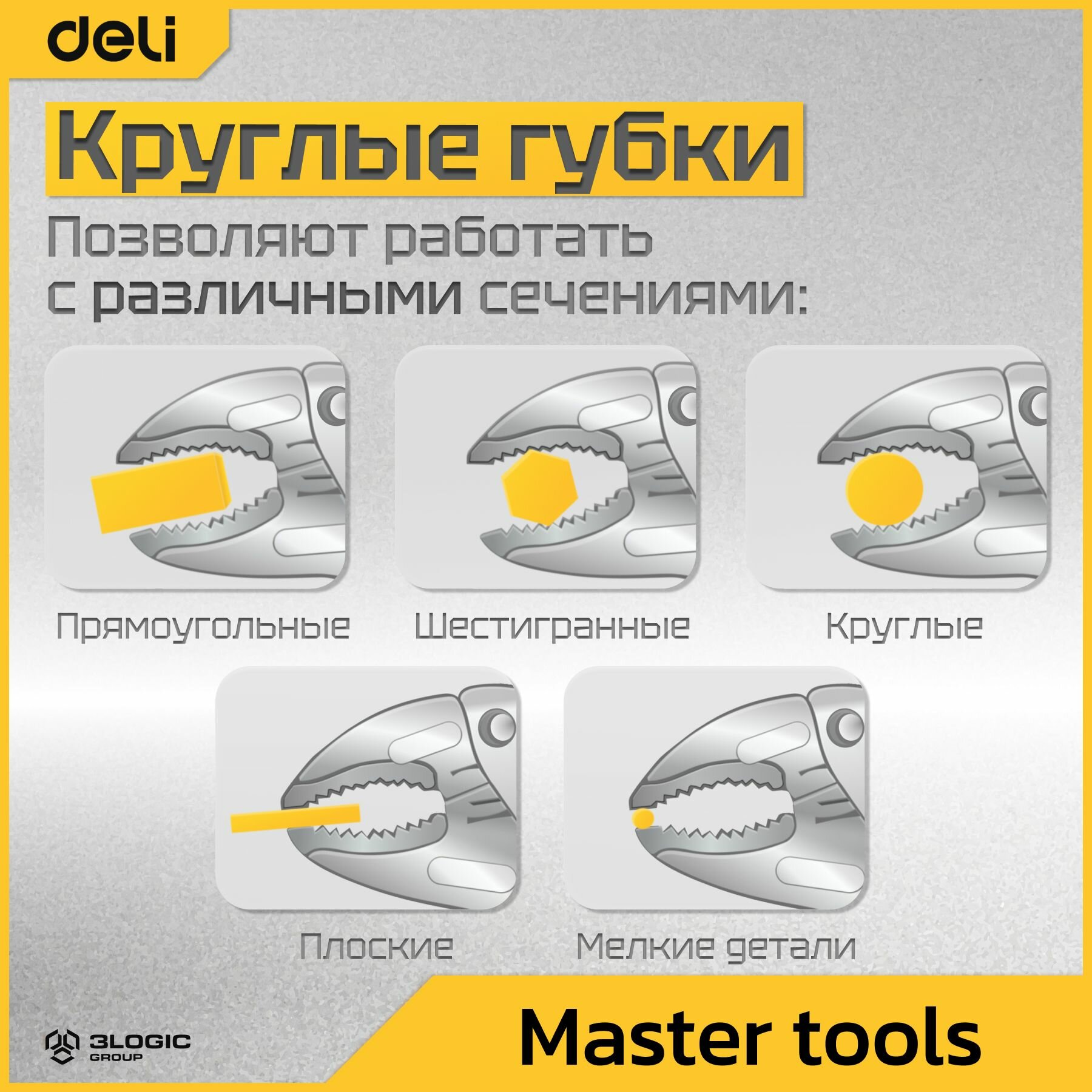 DELI Зажимные клещи с круглыми губкамиDL2001 220мм (рабочий ход 50мм, регулировочный винт) 98274