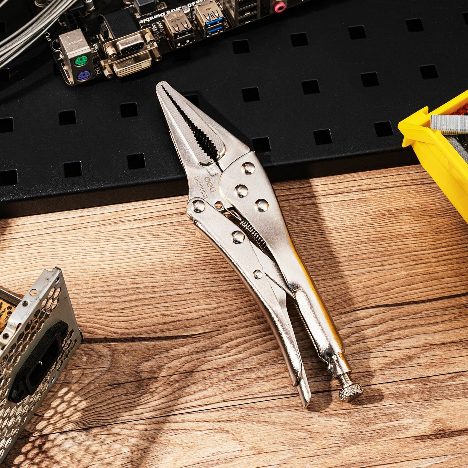 Зажимные клещи с удлиненными прямыми губками Deli DL20015B, регулировочный винт