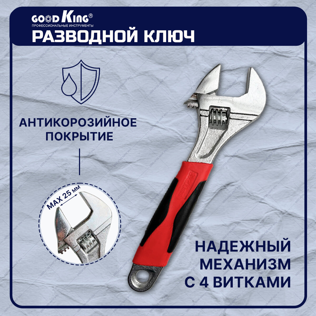 | Гаечные ключи подробно | 10 шт. - комбинированные ключи: 8, 9, 10, 11, 12, 13, 14, 15, 17, 19 мм; 1 шт. - разводной ключ 20 см |