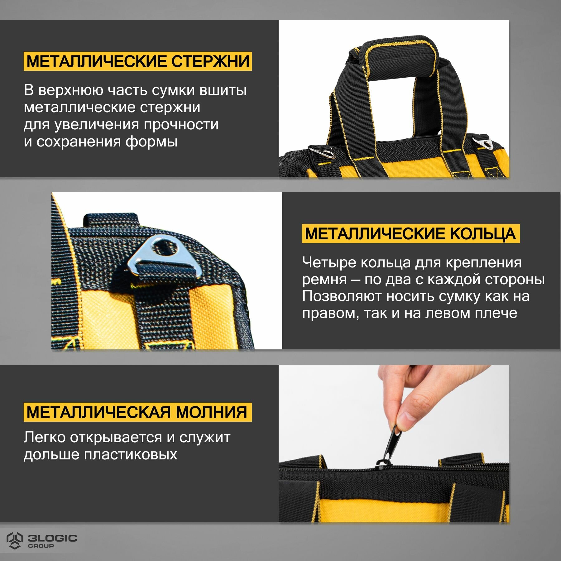 - в отличии от коробок не требуется каждый раз её закрывать - наличие кучи карманов для той же изоленты, ленты фум и т.п., а также небольшого инструмента. С коробкой приходиться иной раз половину инструмента вытащить, пока найдёшь нужное - возможность положить что-то тяжёлое и габаритное поверх инструмента. Тот же щуруповерт... Размеры и прочность ручек данной сумки позволяют это сделать - использованы добротные и прочные материалы для изготовления этой сумки - молнии позволяют использовать маленькие замки для предотвращения воровства ценного инструмента |