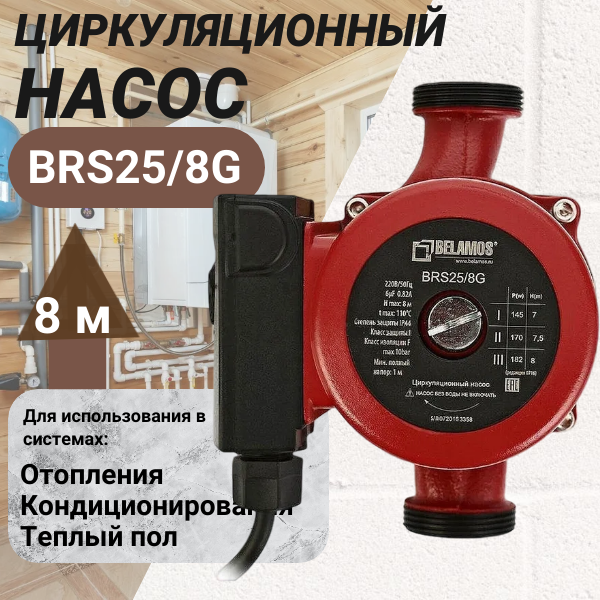 Насос циркуляционный Belamos BRS 25/8G (0,18 кВт, PN10, Qmax 88 л/мин, Hmax 8 м, 1х230В) интересное:
