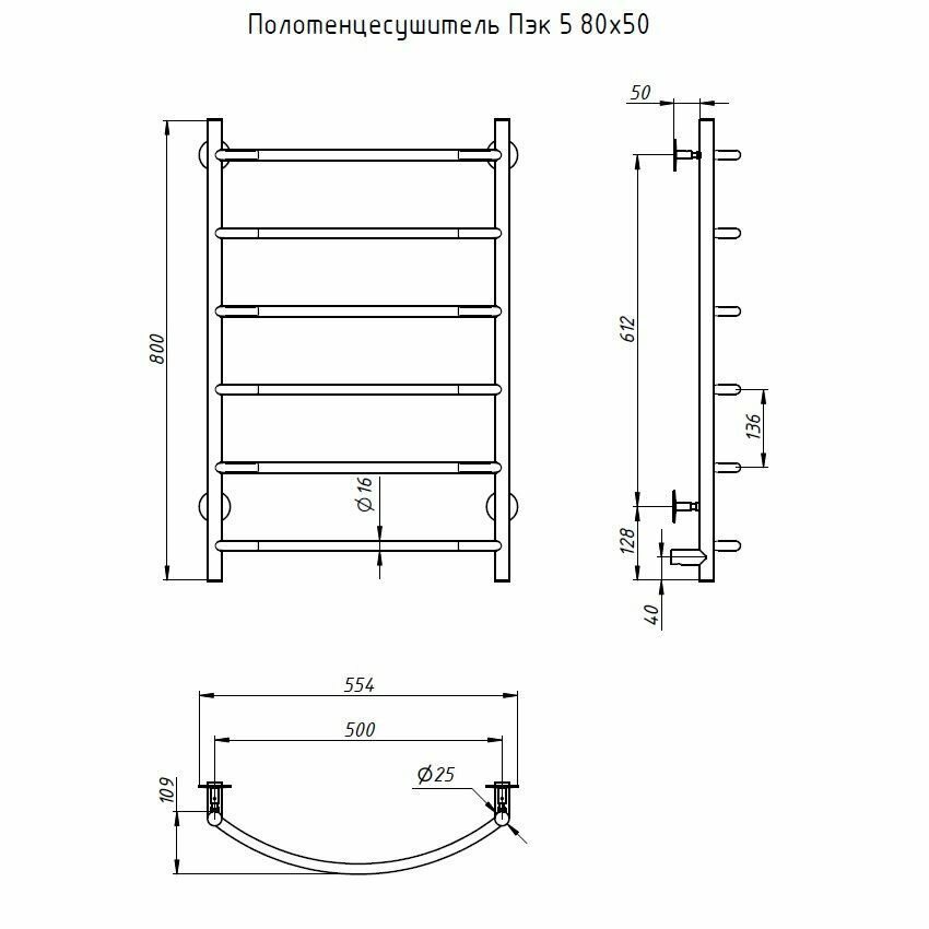 Полотенцесушитель Пэк сп 5 80х50 32 мм