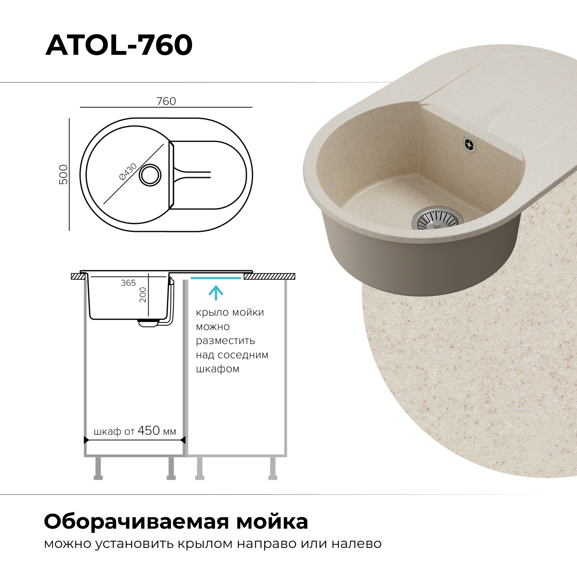 Кухонная мойка Polygran ATOL-760 №302 Песоч