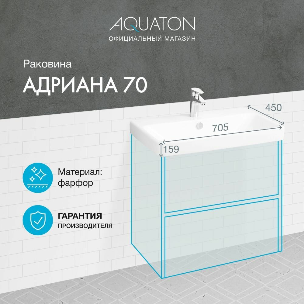 Раковина мебельная AQUATON Адриана 70х45х17, фарфор, цвет Белый 1WH501628