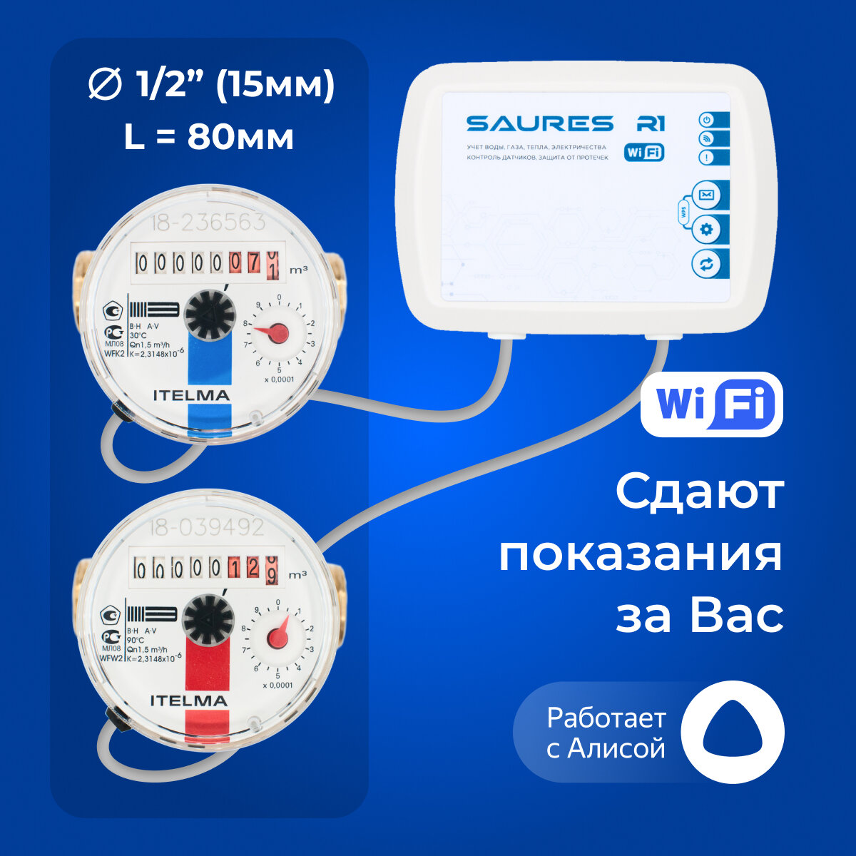 Комплект Saures - Водосчетчики Wi-Fi Квартира 1/2" 80 мм