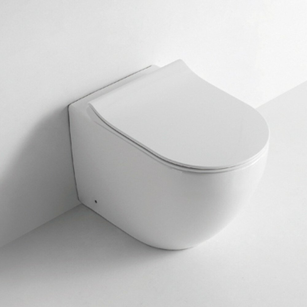 Унитаз напольный Ceramalux безободковый с ультратонкой быстросъемной крышкой Белый NS3176
