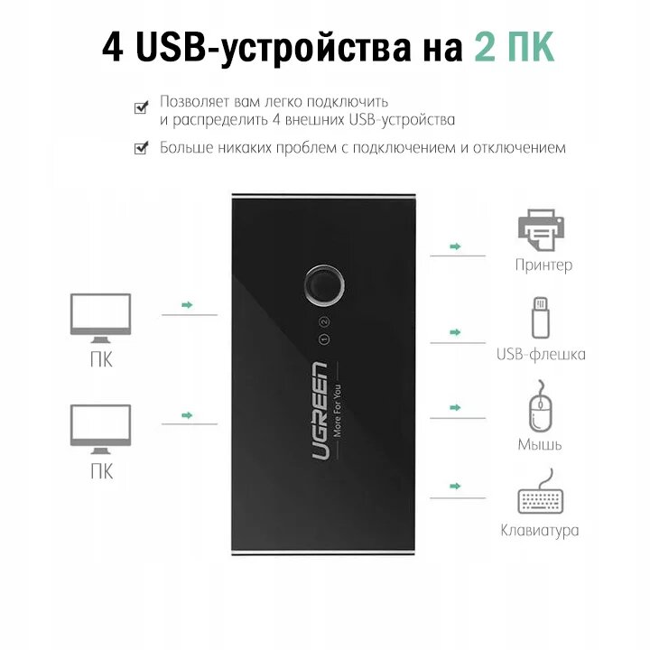 СохранитьМногофункциональный разветвитель UGREEN на 4 порта USB для одновременного подключения устройств к двум компьютерам интересное: