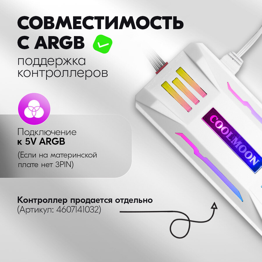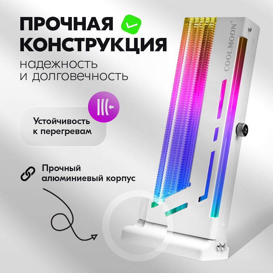 Держатель для видеокарты COOLMOON (вертикальный кронштейн) видеокарты NVIDIA GeForce RTX, GTX, AMD, RX, ASUS, GIGABYTE, Intel с подсветкой, белый