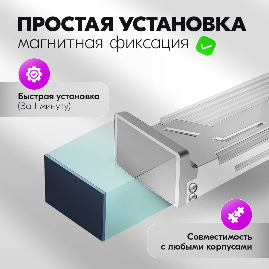 Магнитное дно. Кабель ARGB с удлинителем. Мягкие накладки чтобы не царапало поверхности. |