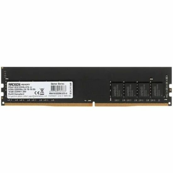 Оперативная память AMD R9 DDR4 - 16GB, 3200 МГц, DIMM, CL16 (r9416g3206u2s-u)