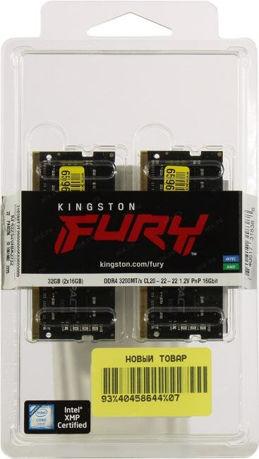 Оперативная память 32Gb Kingston Fury Impact (KF432S20IBK2/32) (2x16Gb KIT) DDR4, 3200MHz, SO-DIMM