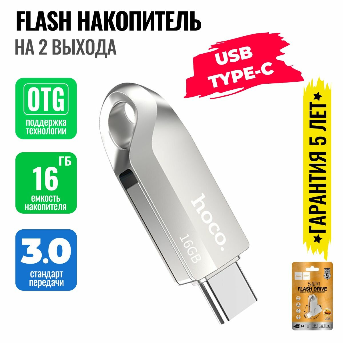 Купить USB Flash Drive 16Gb - Hoco UD8 Smart USB 3.0 / Type-C