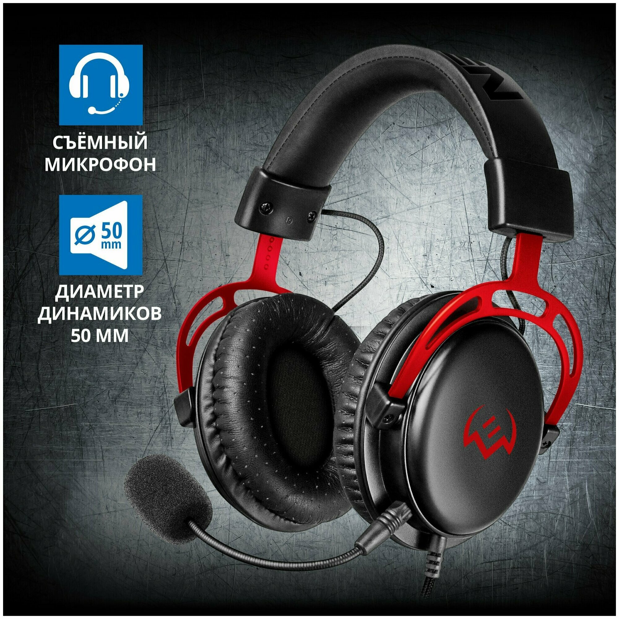 SVEN AP-G1000MV Игровые наушники с микрофоном черно-красные (mini jack 3,5 мм (4 pin), 50 мм)