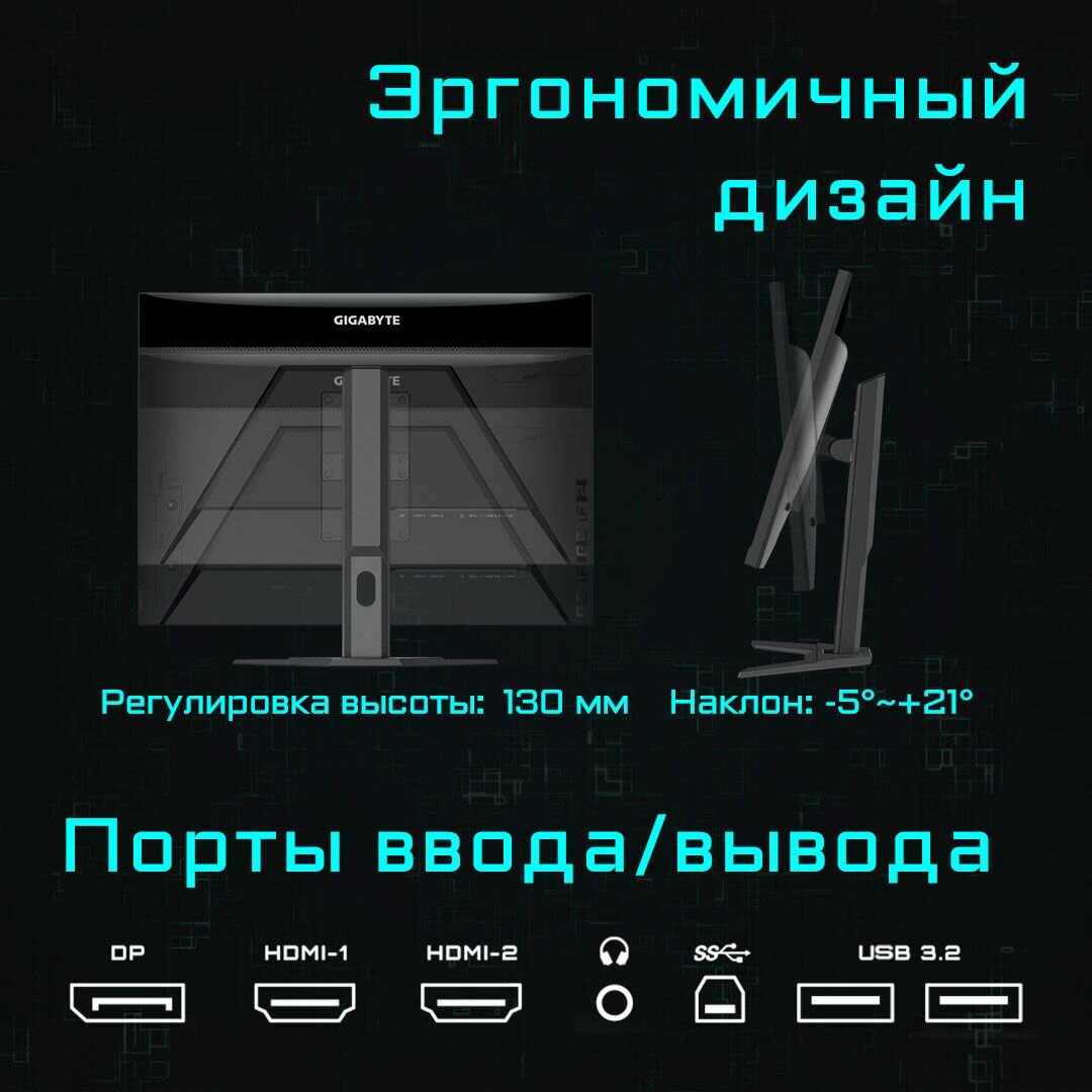 Монитор 27" GIGABYTE G27F 2 1920x1080, IPS, 400кд/м2, 165Hz, 1мс, 178°/178°, FreeSync Premium, 2*HDMI, DP, USB-Hub, черный