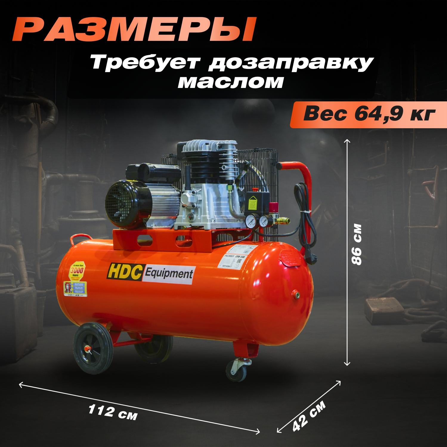 Компрессор масляный HDC HD-A101, 100 л, 2.2 кВт