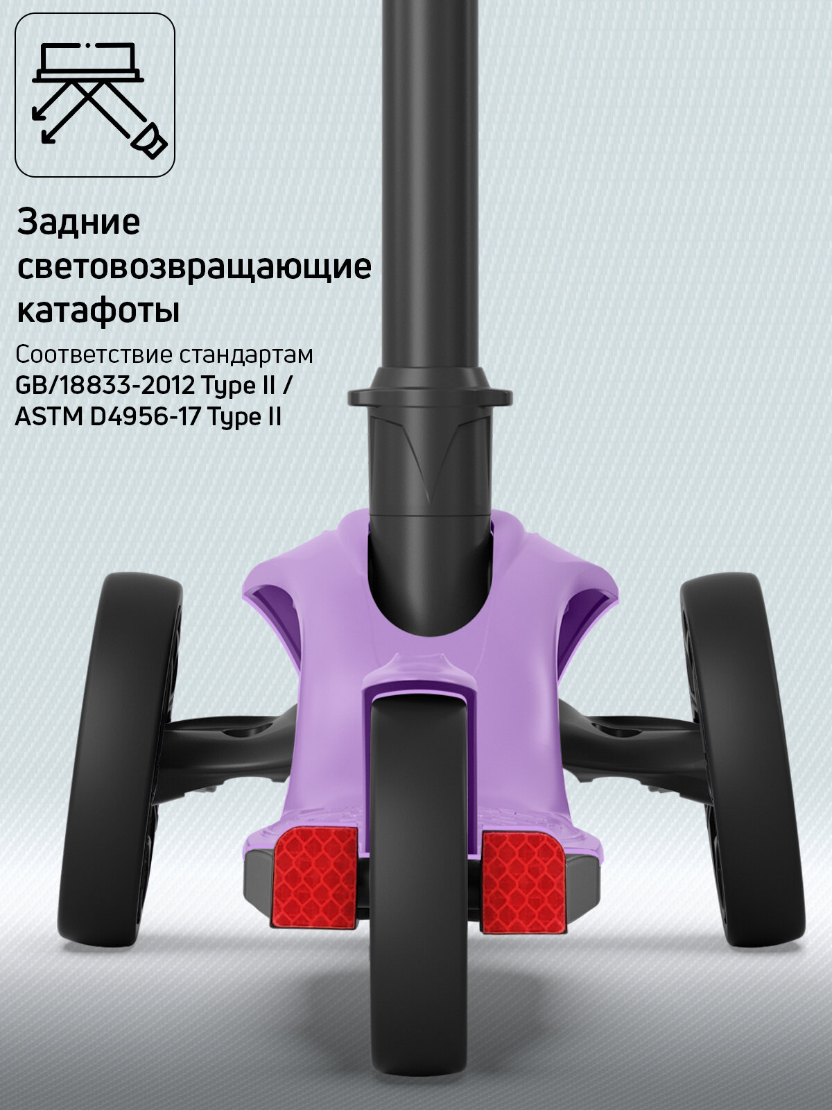 Самокат, самокат трехколесный детский, с цветными ручками Buggy Boom Alfa Mini, фиолетовый
