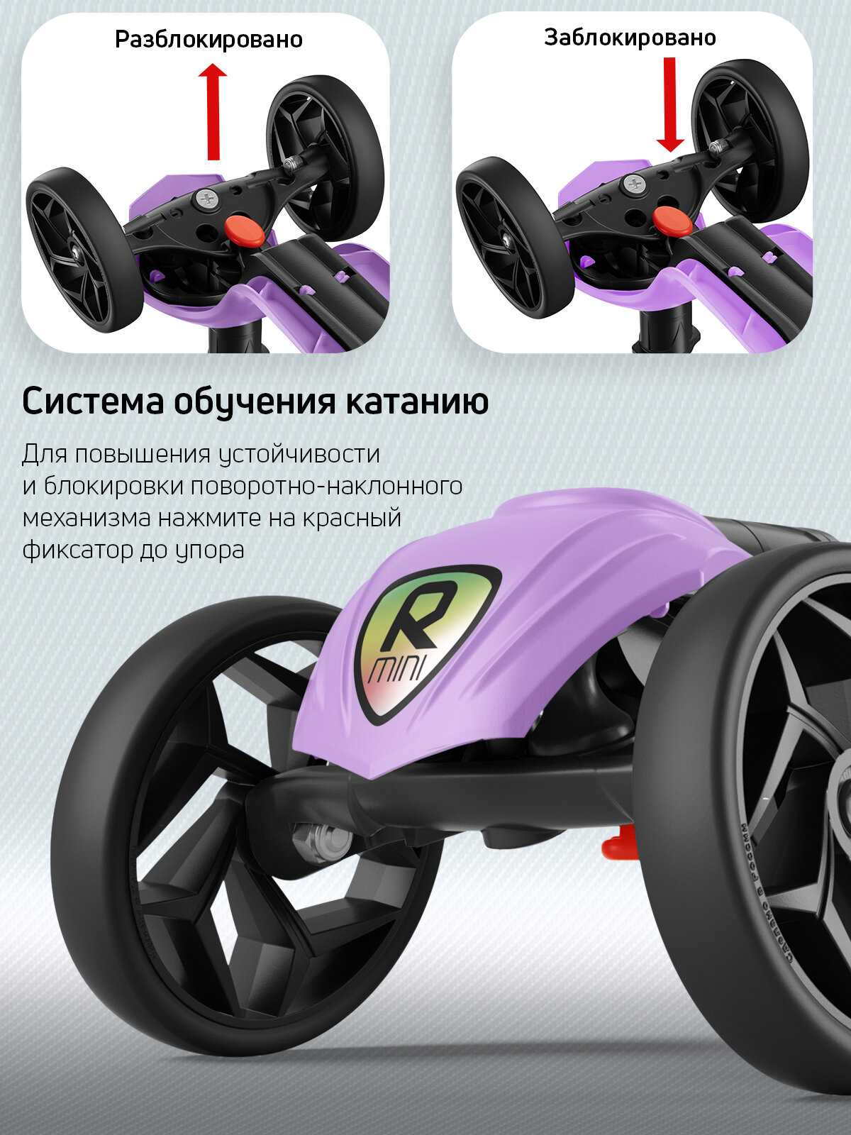 Самокат, самокат трехколесный детский, с цветными ручками Buggy Boom Alfa Mini, нежно-фиолетовый