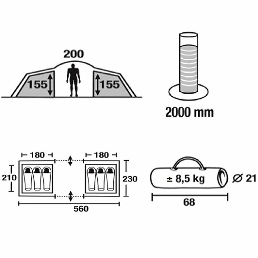 | Габариты внутренней палатки(ДxШxВ) | 180x210x155 cм |