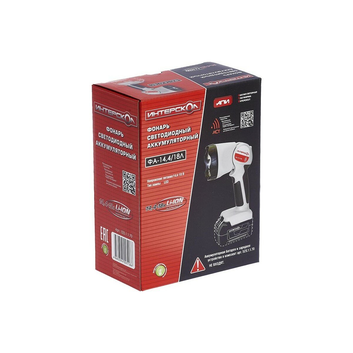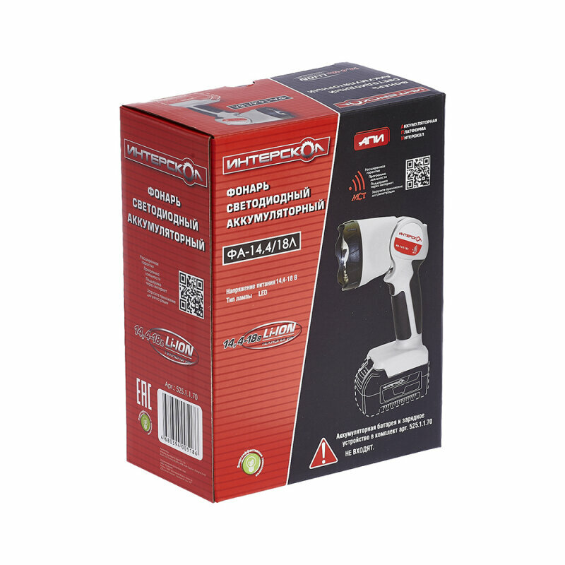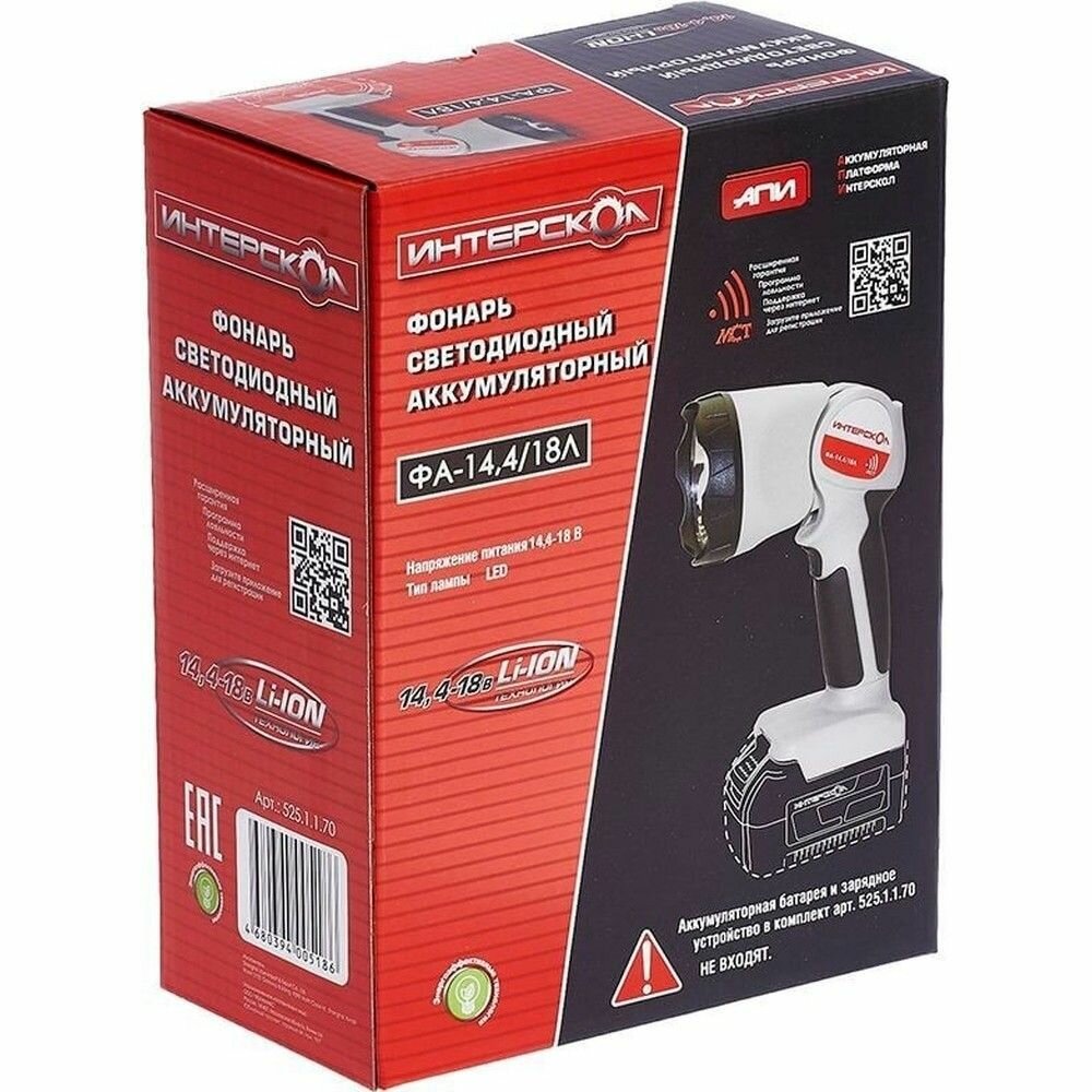 Фонарь аккумуляторный светодиодный ФА-14,4/18Л, Апи Li-ion, без АКБ и ЗУ, ИНТЕРСКОЛ 525.1.1.70