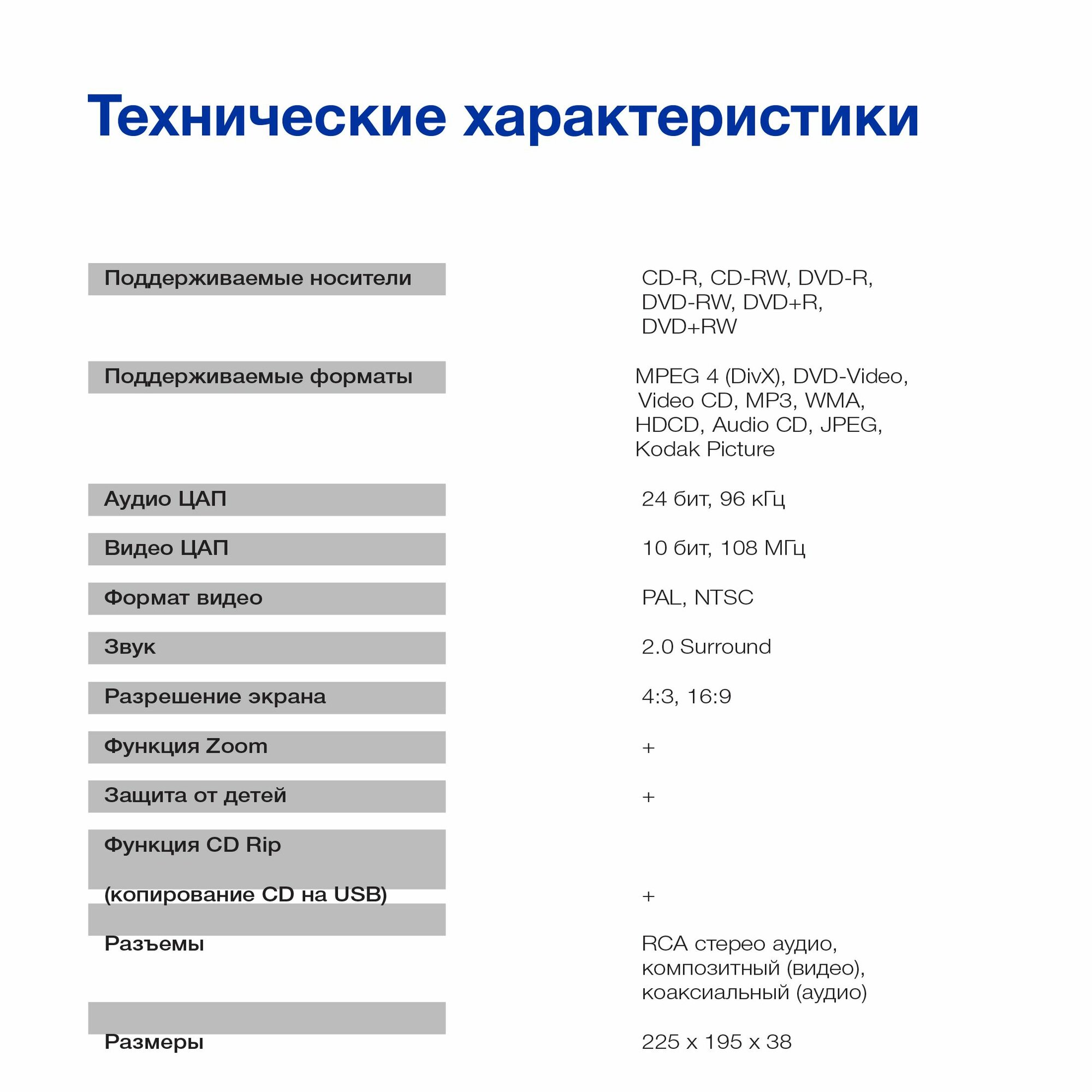 | Минусы: | Глючит. Usb то включается, то не включается. Лоток через раз работает, бывает затормозит наполовине, надо толкнуть. Много чего не читает. Шумит. Пультом надо целиться под лоток. Инструкция одна на несколько моделей и про эту как раз ничего. Описание одно, пульт от другого. Наверное в подвале собирают. |