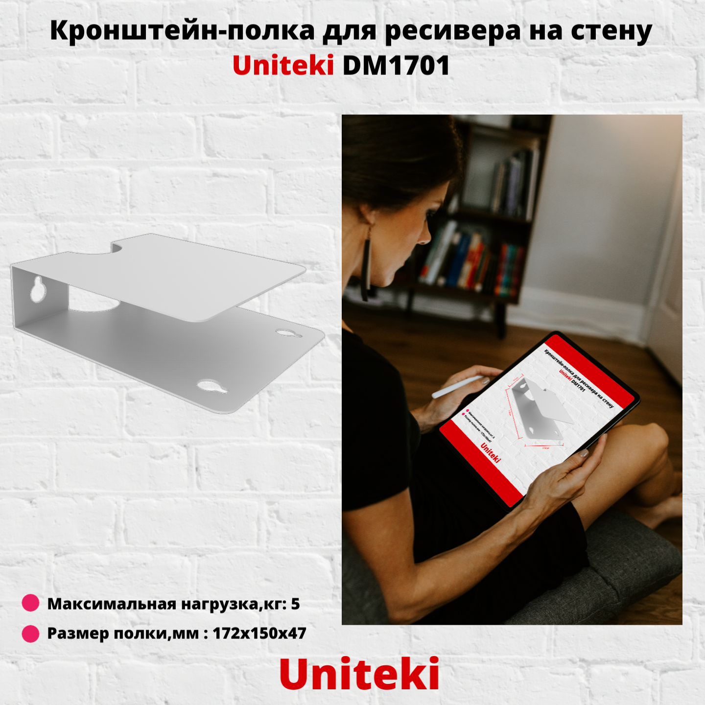 Купить Кронштейн UNITEKI DM1701 white настенный для ресиверов