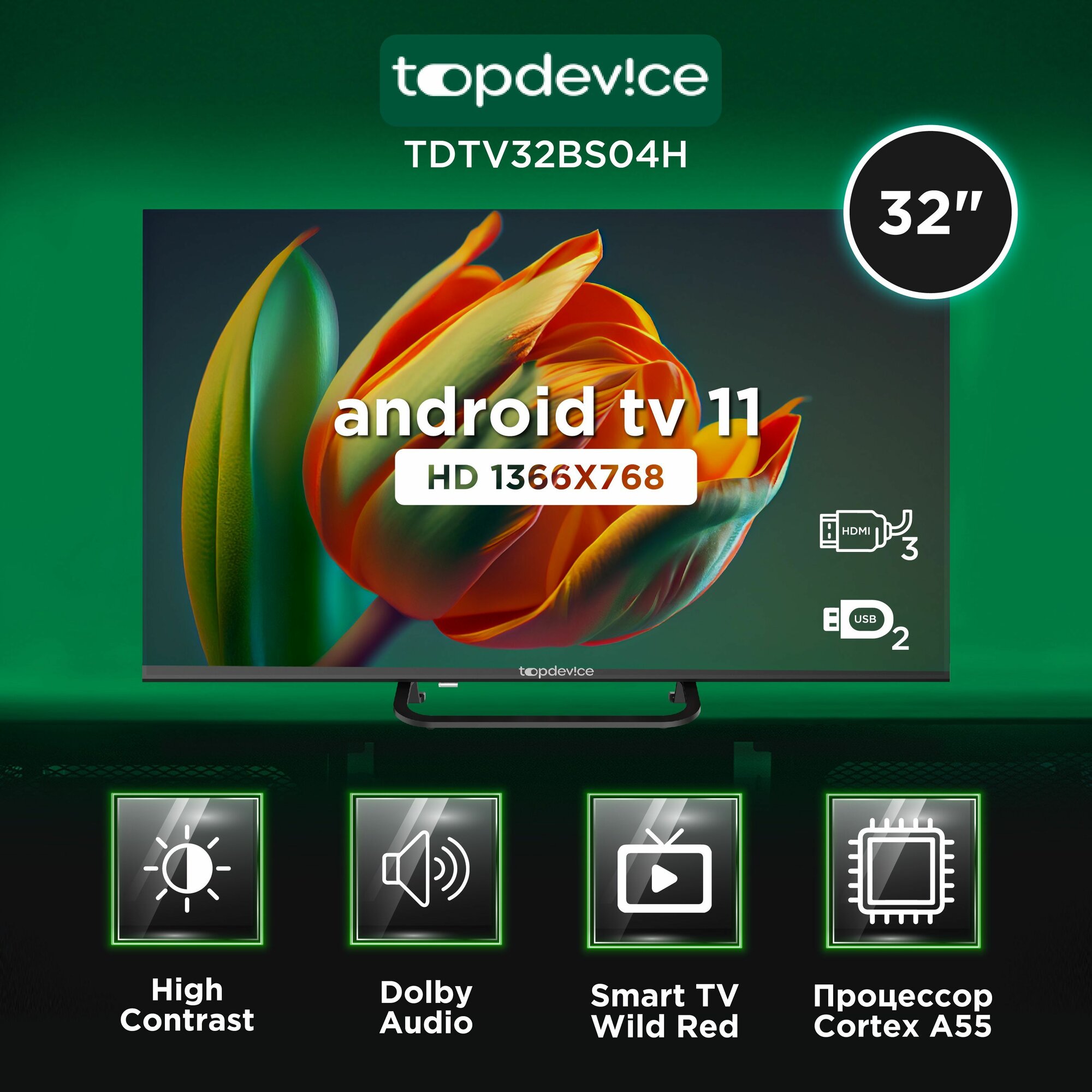 32" Телевизор LED Topdevice TDTV32BS04H_BK /HD/SMART (WildRed)/1-8 Gb/