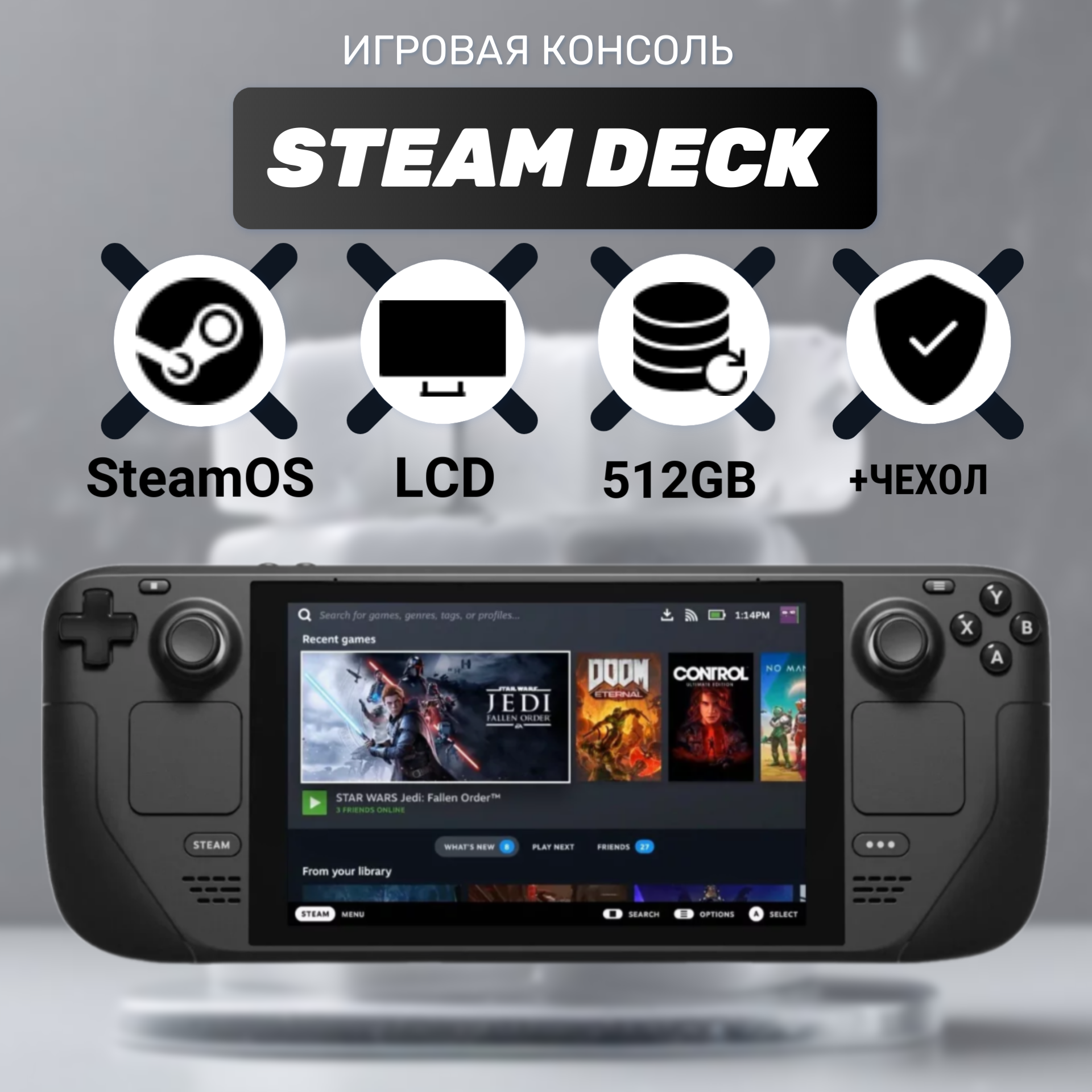 Купить Портативная игровая приставка Valve Steam Deck LCD 512GB + чехол JSAUX
