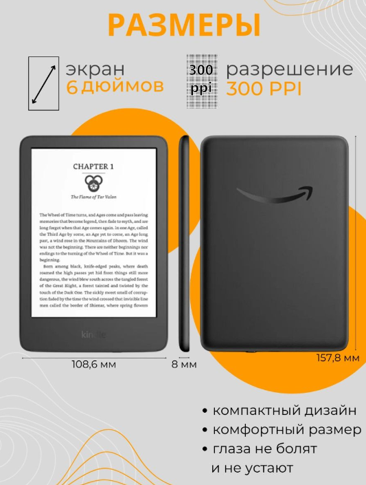 | Отзыв: | хотела эту читалку очень давно. сомневалась, что электронный формат мне зайдёт так же хорошо, как бумажные книги (всё-таки запах страниц, шелест бумаги, ощущение страничек пальцами — неотъемлемая часть в чтении для меня), но спустя пару книг поняла, что с этой читалкой гораздо удобнее. за три месяца прочитала девять очень больших книг только на ней, и довольна полностью. рекламу можно отключить, написав в поддержку амазона — сделали в ту же секунду — но она не сильно мешается |