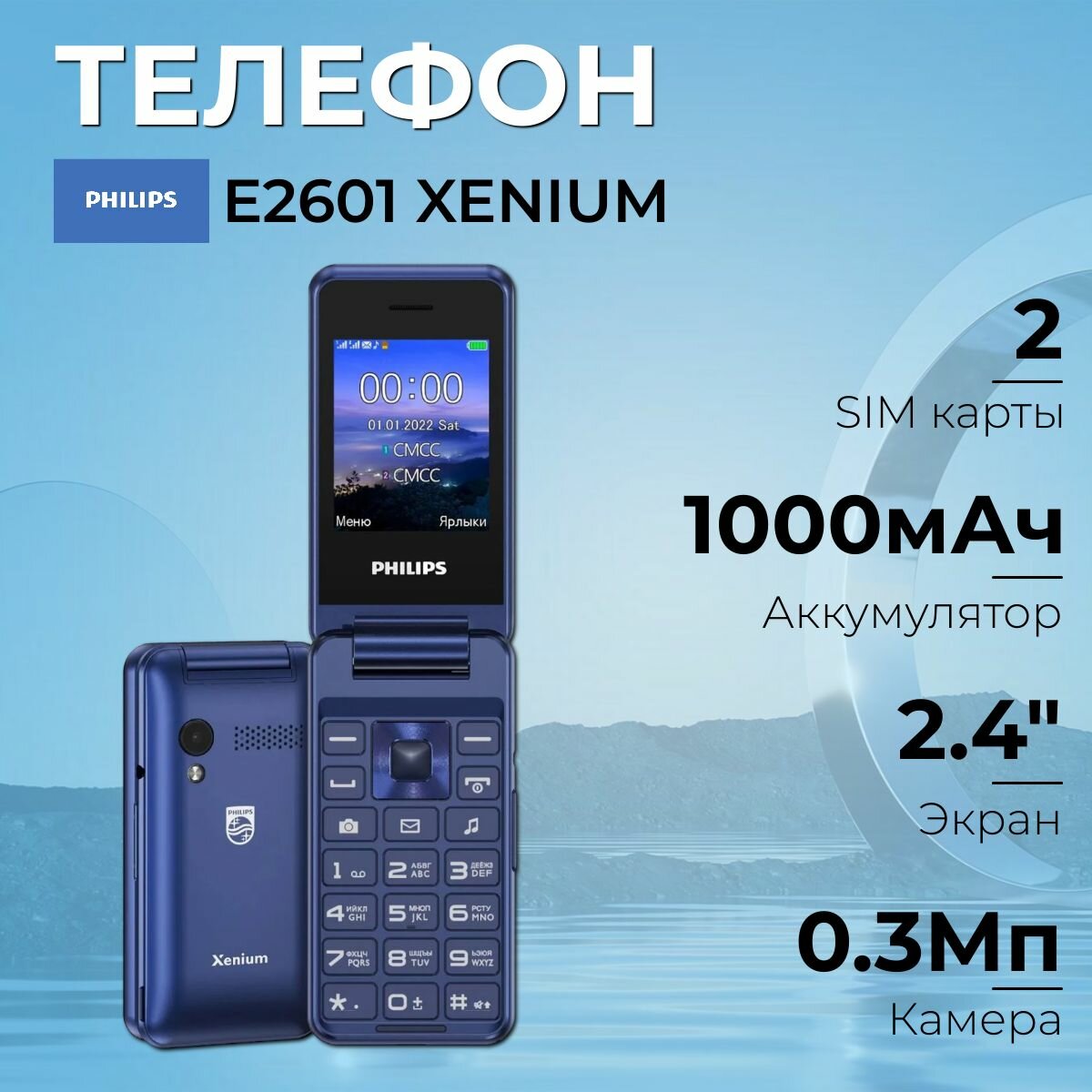 Мобильный телефон Philips E2601 Xenium синий раскладной 2Sim 2.4" 240x320 Nucleus 0.3Mpix GSM900/1800 FM