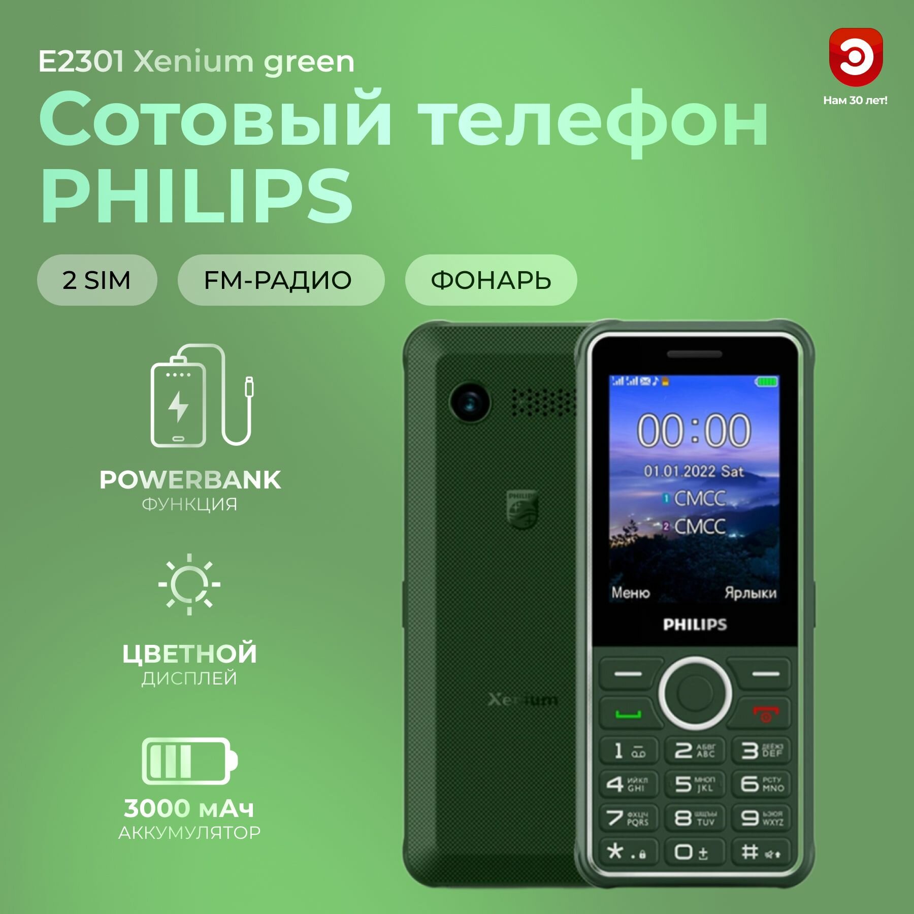 Мобильный телефон Philips E2301 Xenium 32Mb зеленый моноблок 2Sim 2.8" 240x320 Nucleus 0.3Mpix GSM90
