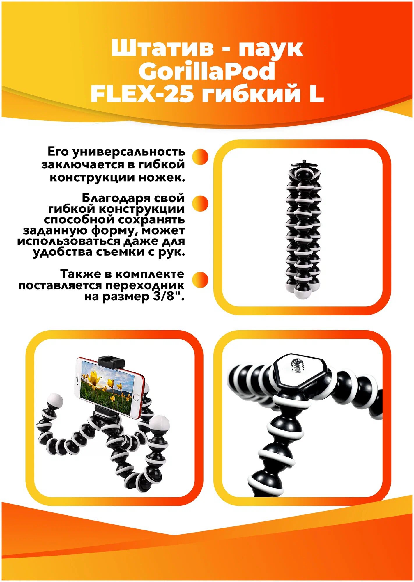 | Дополнительная информация | гибкий штатив |