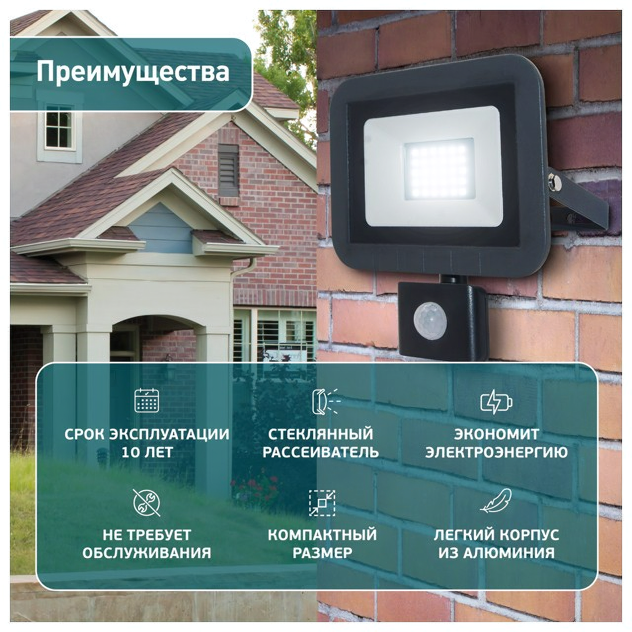 | Плюсы: | Хорошая чувствительность и охват сенсора, яркий световой поток, легкость монтажа |