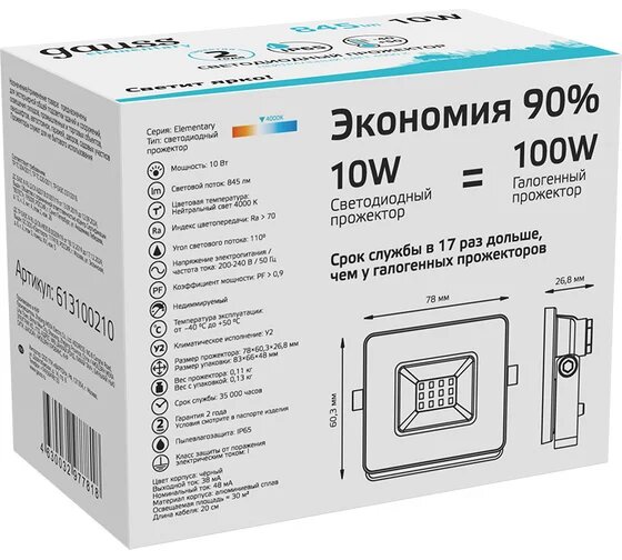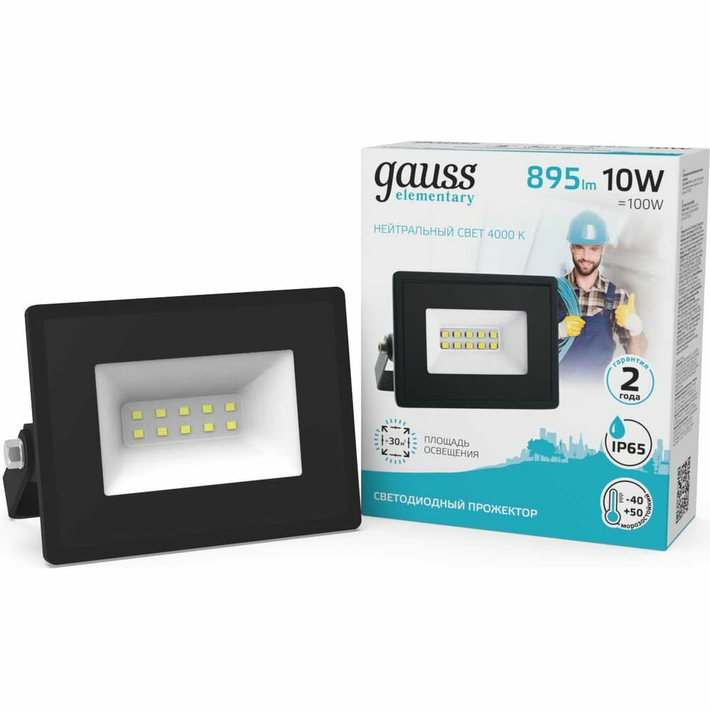 Прожектор светодиодный gauss Elementary 613100210, 10 Вт, свет: дневной белый