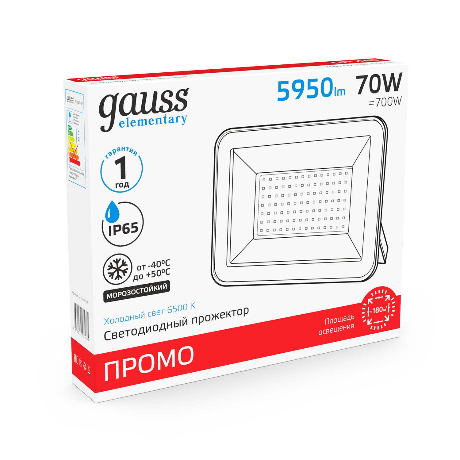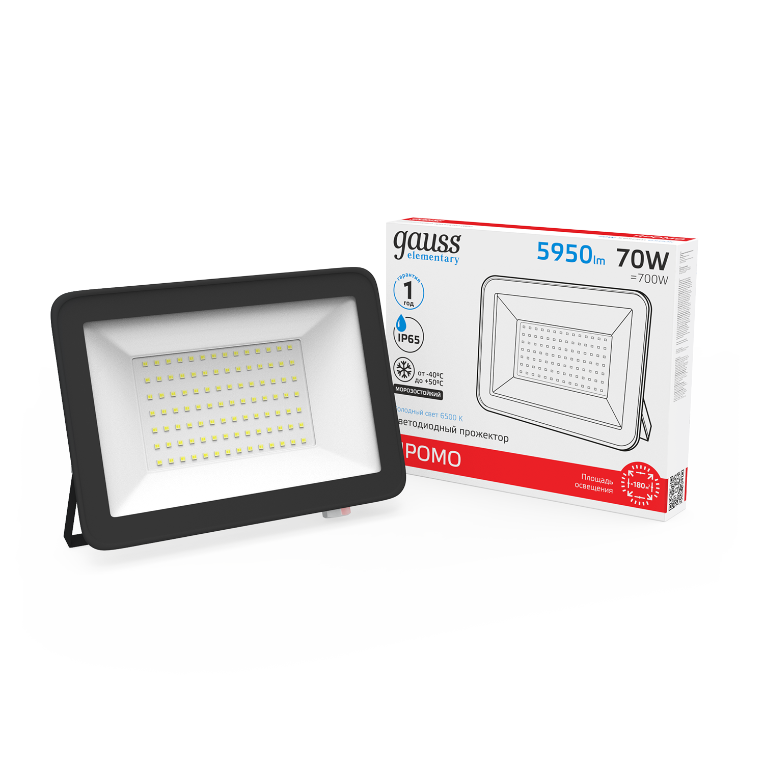 Купить Прожектор светодиодный 70W IP65 холодный свет 6500К черный Gauss Elementary