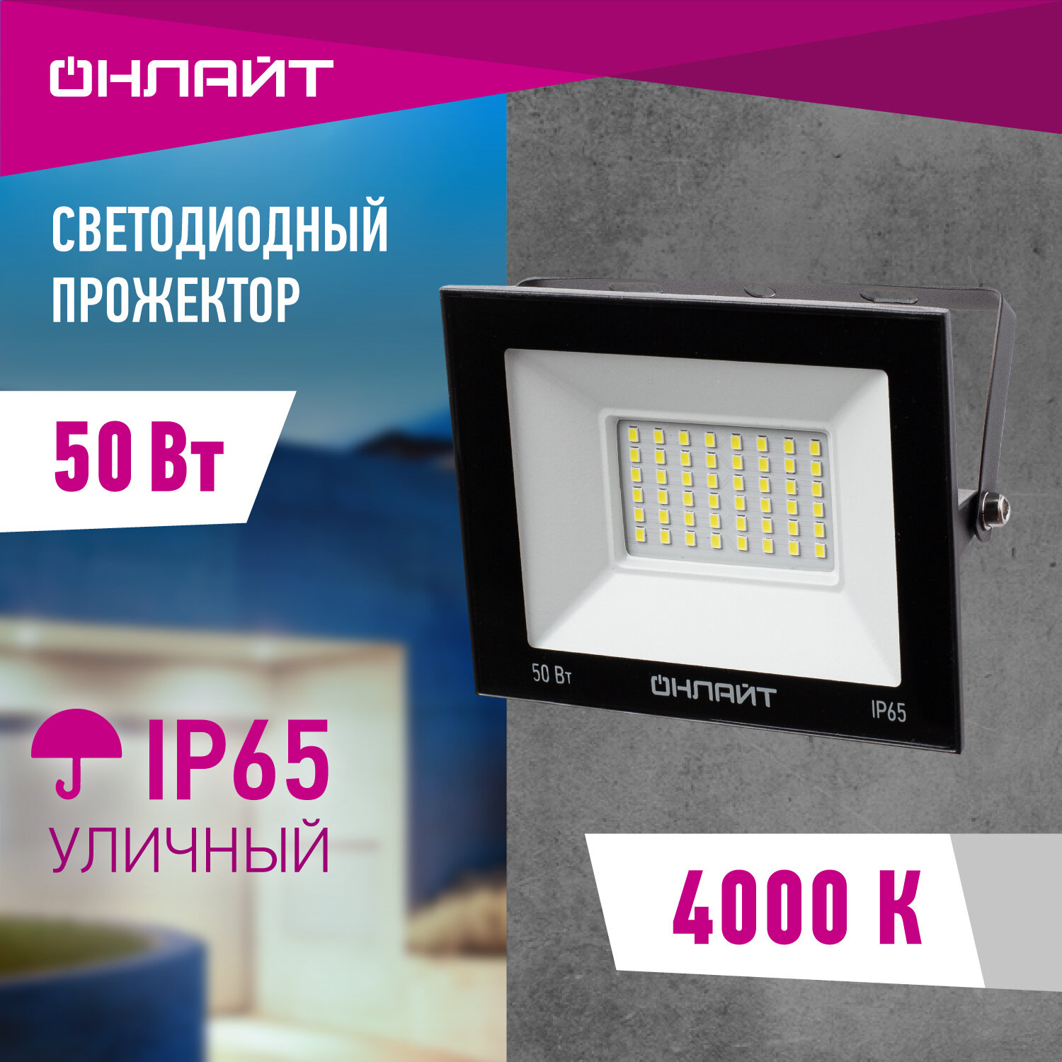 Купить Прожектор светодиодный Онлайт OFL 4000К 50 Вт IP65 черный (71659)