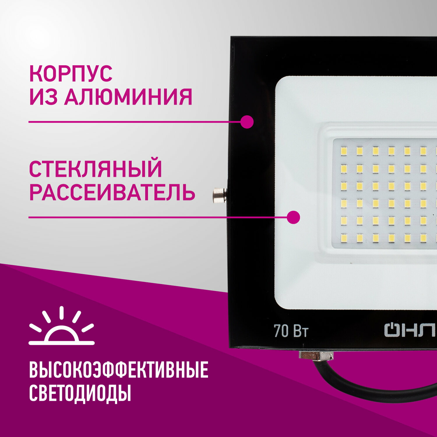 Прожектор светодиодный 70 Вт онлайт OFL-70-6K-BL-IP65-LED