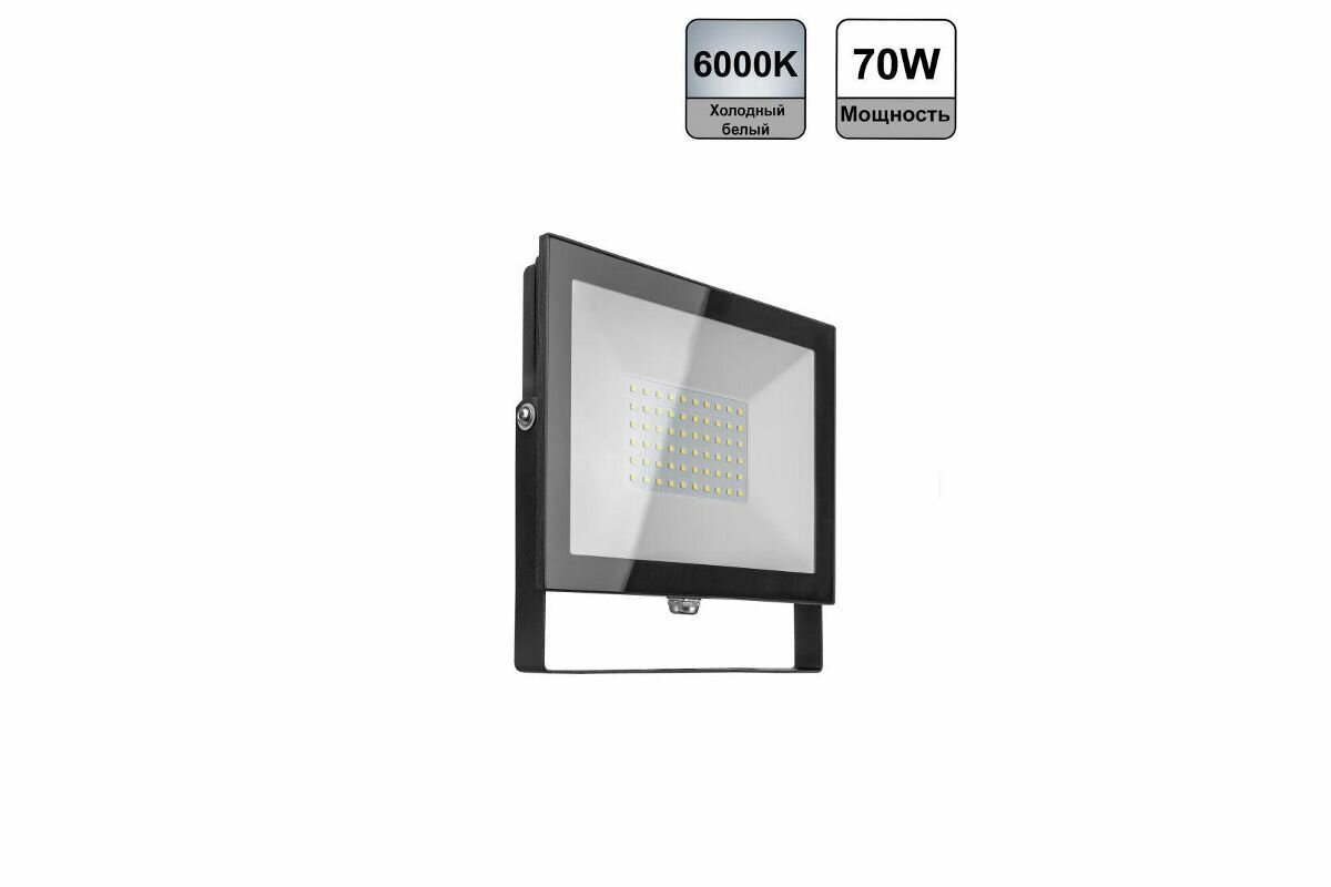 Прожектор светодиодный 70Вт 6000К черный IP65 220х191х28 5600Лм OFL-70-6K-BL-IP65-LED онлайт