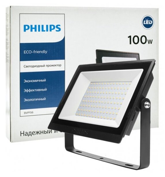 Купить LED прожектор Philips 100Вт 220В 4000К Дневной белый 8000Лм IP65 черный 254x171x35, уп. 1шт